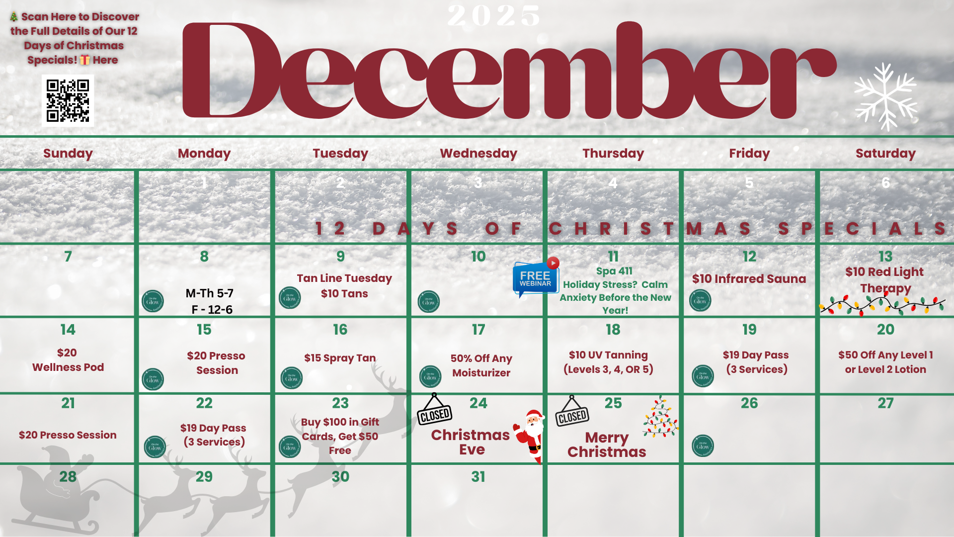 Make this holiday season a little brighter with our 12 Days of Christmas Specials! Whether youβre treating yourself or gifting a loved one, these exclusive offers are the perfect way to spread joy and wellness.
